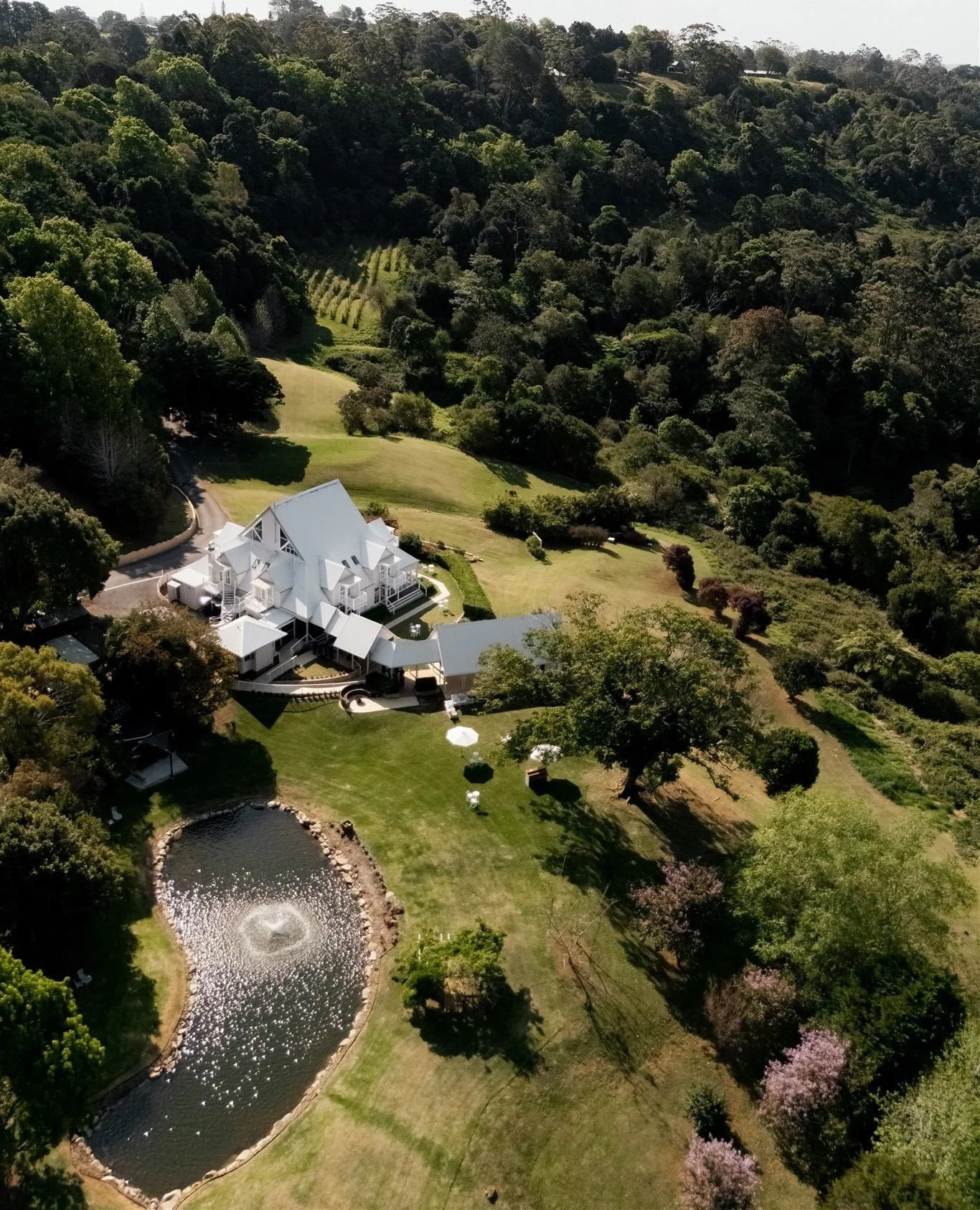 Established in 1989, Maleny Manor is a private 30-acre estate dedicated exclusively to weddings and exceptional events. Set within the Sunshine Coast Hinterland, the property boasts sweeping coastal views extending to Mount Coolum. A refined setting designed for privacy, scale and considered detail.